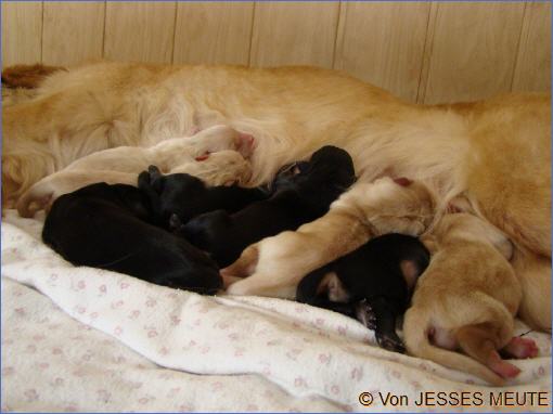 Die kleine Meute ist 14 Tage alt