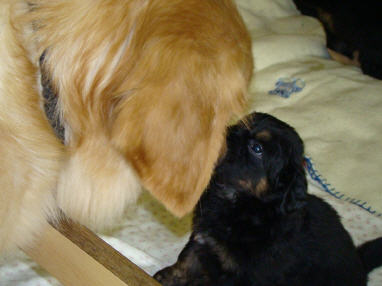 Sie hat dort einen fünfjährigen Hovawartrüden als Spielgefährten und eine zwölfjährige Freundin, die sich sehr über ihre Ankunft freut.